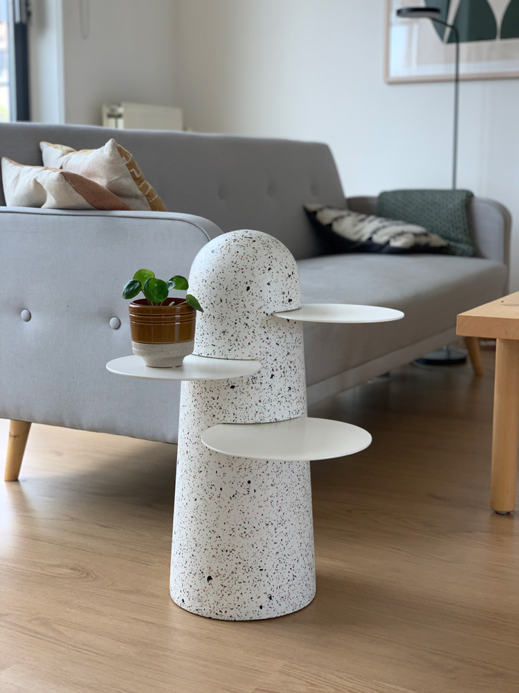 De BoBo is behoorlijk eigenzinnig. Is het eigenlijk wel een bijzettafel of meer een object? Hij is in ieder geval wél handig! De drie plateau’s bieden ruimte voor kopjes, telefoon, iPad, afstandsbediening of gewoon een lekker ouderwets boek. Hij is zwaar genoeg om niet om te vallen en licht genoeg om hem te verplaatsen.