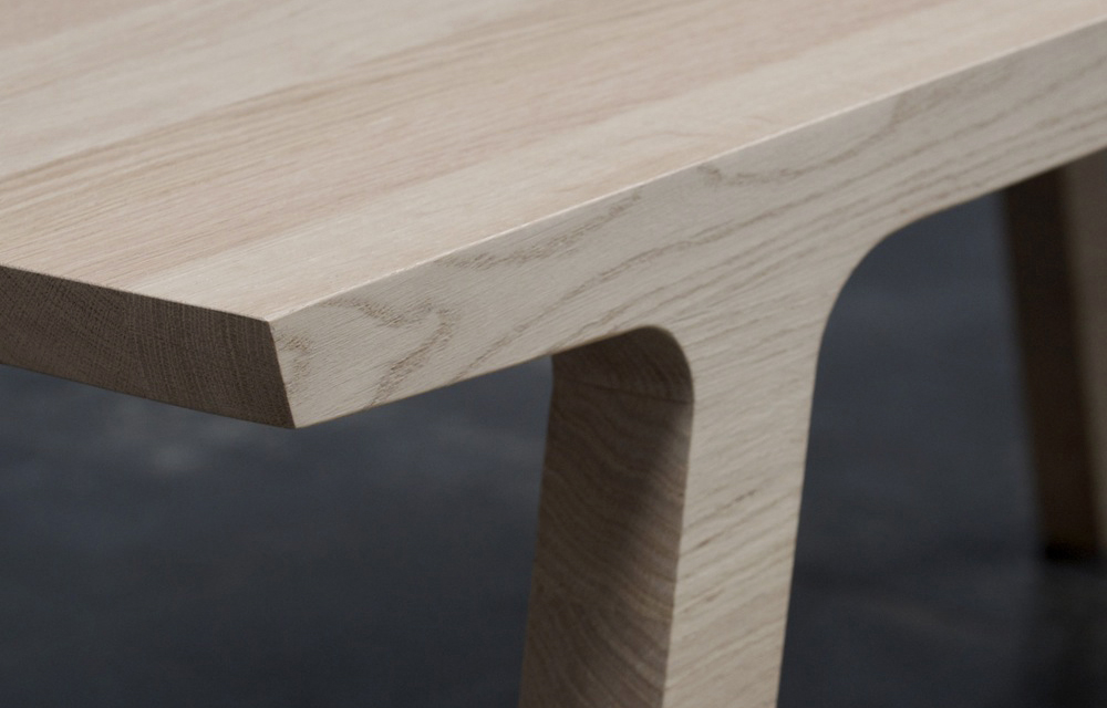 Stoer en elegant. De twee gezichten van de houten eettafel One. Van de zijkant gezien is z’n silhouet zacht. Kijk je van de korte kant dan zie je een scherpe, haast afgekapte vorm. Die dualiteit vind ik spannend. Omdat de nerf over de hele houten eettafel doorloopt lijkt het alsof One uit één blok Europees eiken is gezaagd. Daardoor krijgt de tafel een hele rustige en moderne uitstraling, ondanks het klassieke materiaal.